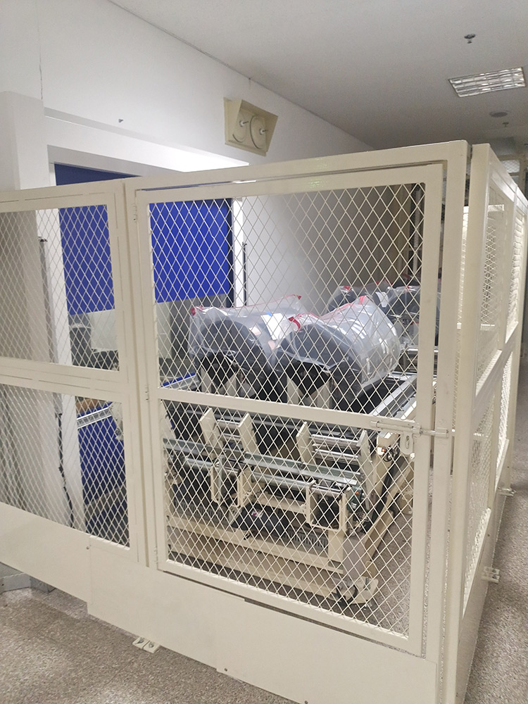 通过物流输送系统,将1楼的货物分别输送至2楼或3楼VD室内,供室内生产使用。该套系统包含LIFT输送机,高空物流线、地面高位物流线、旋转物流线、高空平台RGV有轨小车、升降物流线、牙叉移栽设备、空栈板堆层升降机、快速卷帘门及配套的安全防护设备。