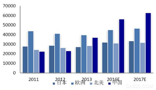 资料图:2011-2017E年全球各国家机器人销量