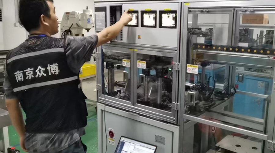 机械部分朵TOYO模组,SMC滑台气缸,无杆气缸,导杆气缸,MHZ 2系列夹爪气缸。振动盘供合油油封,基恩士IX-1000视觉相机区分密封圈正反,直线送料器分三道同时供料。连续间歇V型夹爪取放阀杆,自动上空托盘,成品托盘循环使用。