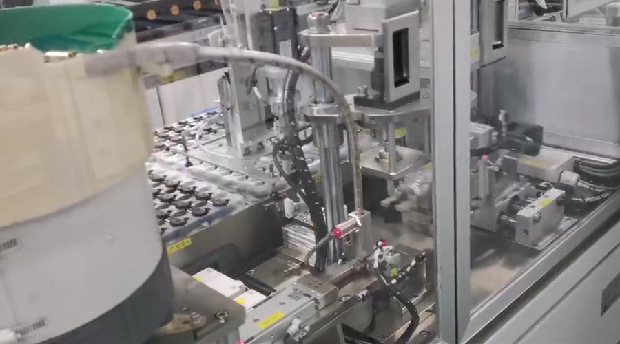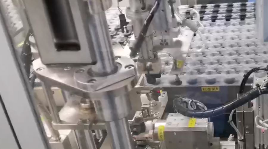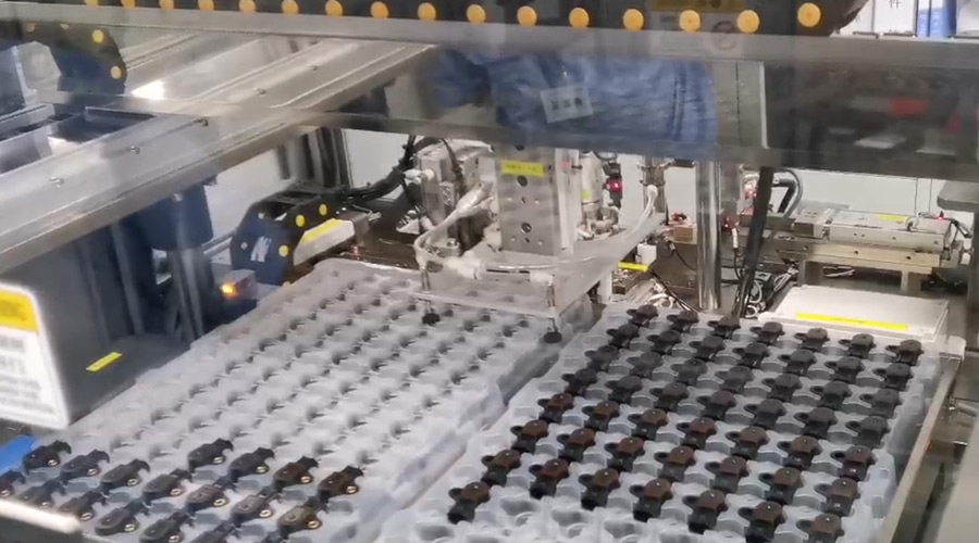 机械部分朵用 TOYO模组,SMC滑台气缸,MSQ摆台气缸,MRHQ摆动气爪,磁偶气缸,ZP系列真空吸盘。振动盘供料,仿型夹爪取放料,原料托盘循环使用。